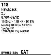 Номер BWH58185A