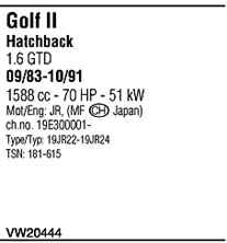 | Номер | VW20444 |