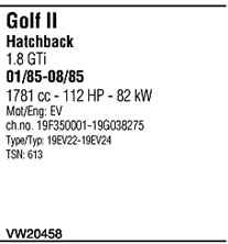| Номер | VW20458 |