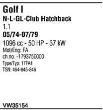 | Номер | VW35154 |