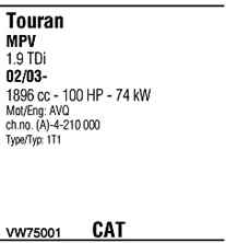 | Номер | VW75001 |