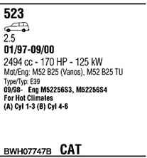 | Номер | BWH07747B |
