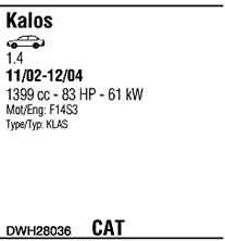 WALKER DWH28036 Система випуску відпрацьованих газів