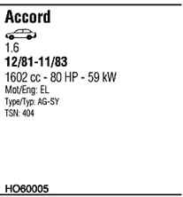 WALKER HO60005 Система випуску відпрацьованих газів