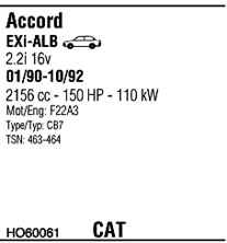 WALKER HO60061 Система випуску відпрацьованих газів