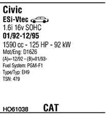 WALKER HO61038 Система випуску відпрацьованих газів
