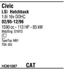 WALKER HO61087 Система випуску відпрацьованих газів