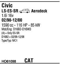 WALKER HO61098 Система випуску відпрацьованих газів