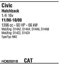 WALKER HO62001B Система випуску відпрацьованих газів