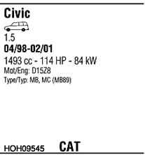 WALKER HOH09545 Система выпуска ОГ