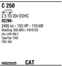 WALKER MB25025 Система випуску відпрацьованих газів