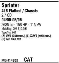 WALKER MBH14985 Система випуску відпрацьованих газів
