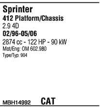 WALKER MBH14992 Система выпуска ОГ