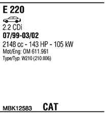 WALKER MBK12583 Система выпуска ОГ