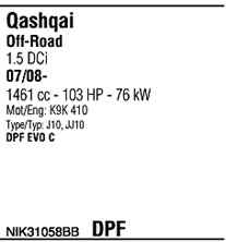 Номер NIK31058BB