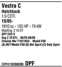 | Номер | OPH19286BB |