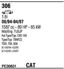 WALKER PE30631 Система випуску відпрацьованих газів