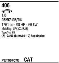 WALKER PET08707B Система випуску відпрацьованих газів