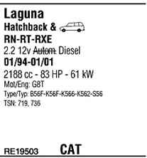 WALKER RE19503 Система випуску відпрацьованих газів