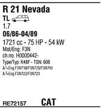 WALKER RE72157 Система випуску відпрацьованих газів