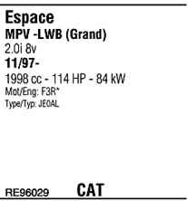 WALKER RE96029 Система випуску відпрацьованих газів