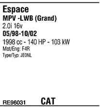WALKER RE96031 Система випуску відпрацьованих газів