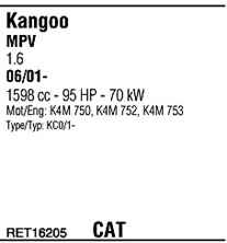 WALKER RET16205 Система випуску відпрацьованих газів
