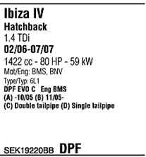 WALKER SEK19220BB Система выпуска ОГ