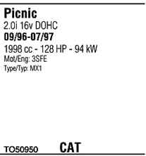WALKER TO50950 Система випуску відпрацьованих газів