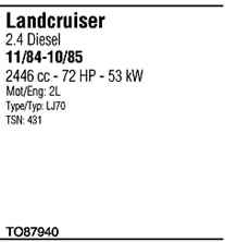 | Номер | TO87940 |
