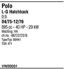 | Номер | VW20031 |