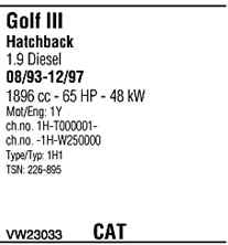 | Номер | VW23033 |