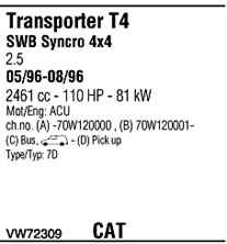| Номер | VW72309 |